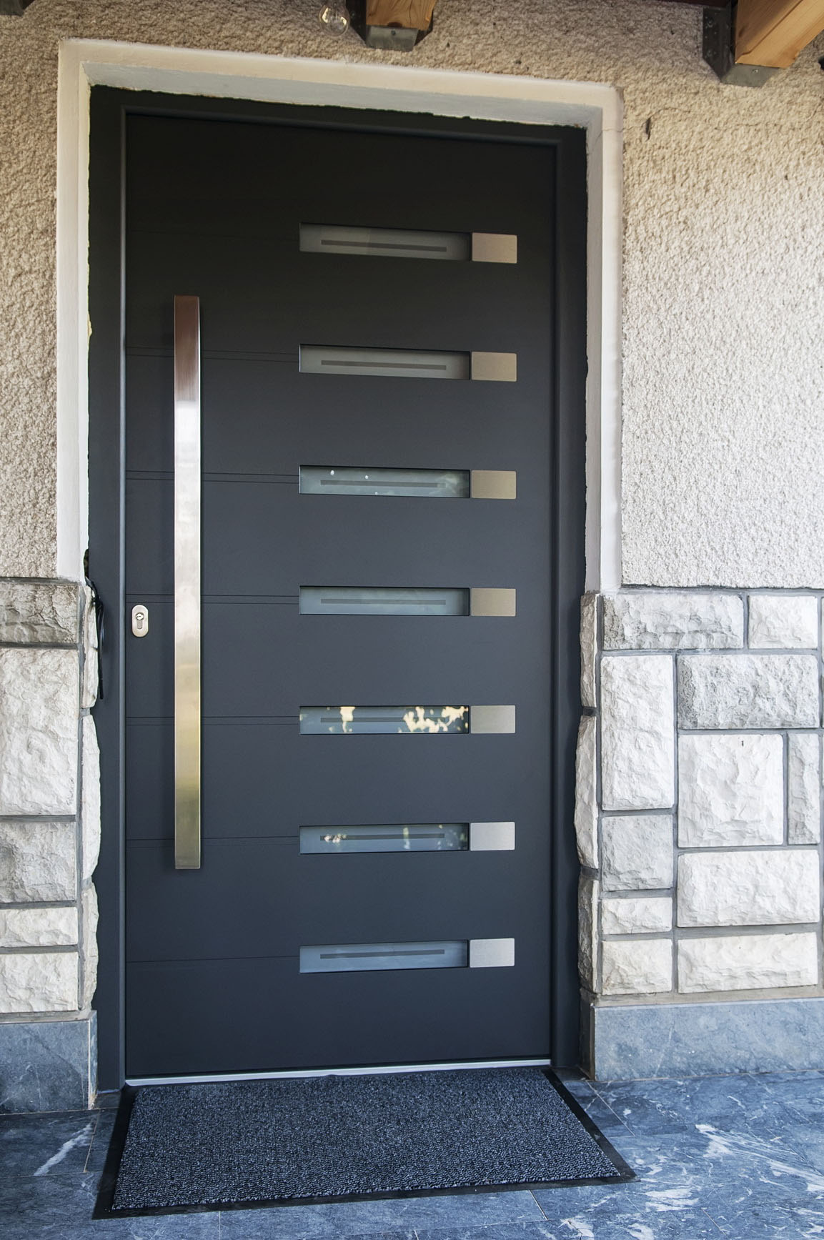Aluminij je material, ki se najpogosteje uporablja v sodobnih gradnjah, saj deluje atraktivno, je privlačen na pogled in moderno dopolni pročelje hiše, primeren pa je tudi za prenove objektov, saj jim doda novodoben arhitekturni pečat. ALU vrata so sinonim za trdnost, dolgo obstojnost in neobčutljivost na zunanje vremenske vplive iz okolja, zato je vredno zanje odšteti tudi kak evro več. Njihova toplotna in zvočna izolativnost je okrepljena s trojnim tesnjenjem in trojno zastekitvijo in vmesnim izolacijskim slojem. To so vhodna vrata, ki vas ne bodo pustila na cedilu in bodo tudi po desetletju uporabe taka, kot bi jih ravnokar vgradili v objekt.